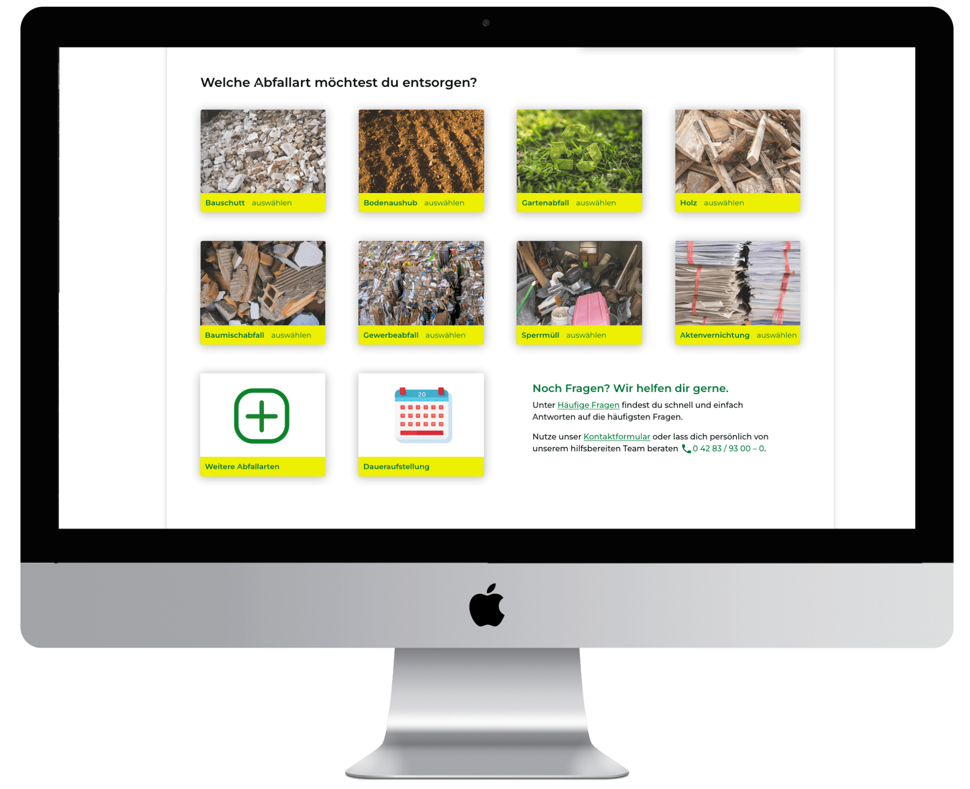 Ziel war eine klare, selbsterklärende Nutzerführung, die unterschiedliche Abfallarten intuitiv erfassbar macht und gleichzeitig die digitale Containerbestellung integriert.
